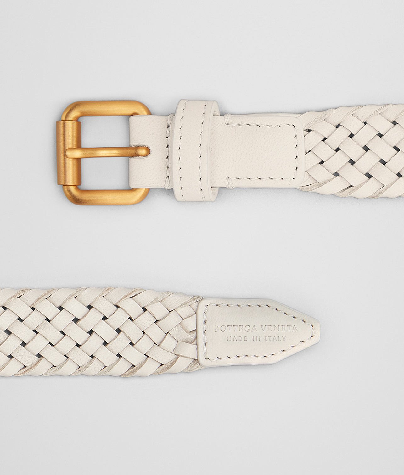 * 수작업으로 완성된 인트레치오 까바 스타일의 슬림한 나파 가죽 벨트. 보테가 베네타의 가장 아이코닉한 까바 토트 백을 제작하는 데 사용된 탁월한 장인기술을 발휘하여 심플하고 섬세한 양면 디자인 패턴을 완성합니다. 해당 벨트는 보테가 베네타 브랜드를 상징하는 뛰어난 이탈리아 장인 정신과 모던한 감성이 결합된 새로운 스타일로 완성되었습니다.