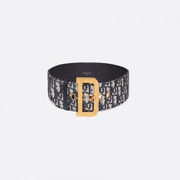 * 블루 Dior Oblique 자카드 패브릭 Diorquake 벨트, 블루 암송아지 가죽 디테일.