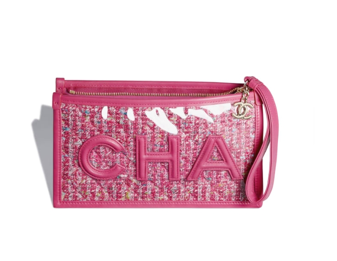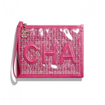 Tweed, PVC, Lambskin & Gold-Tone MetalPink, Blue, White & Ochre15 × 25 × 3.5 cmin5.9 × 9.8 × 1.4